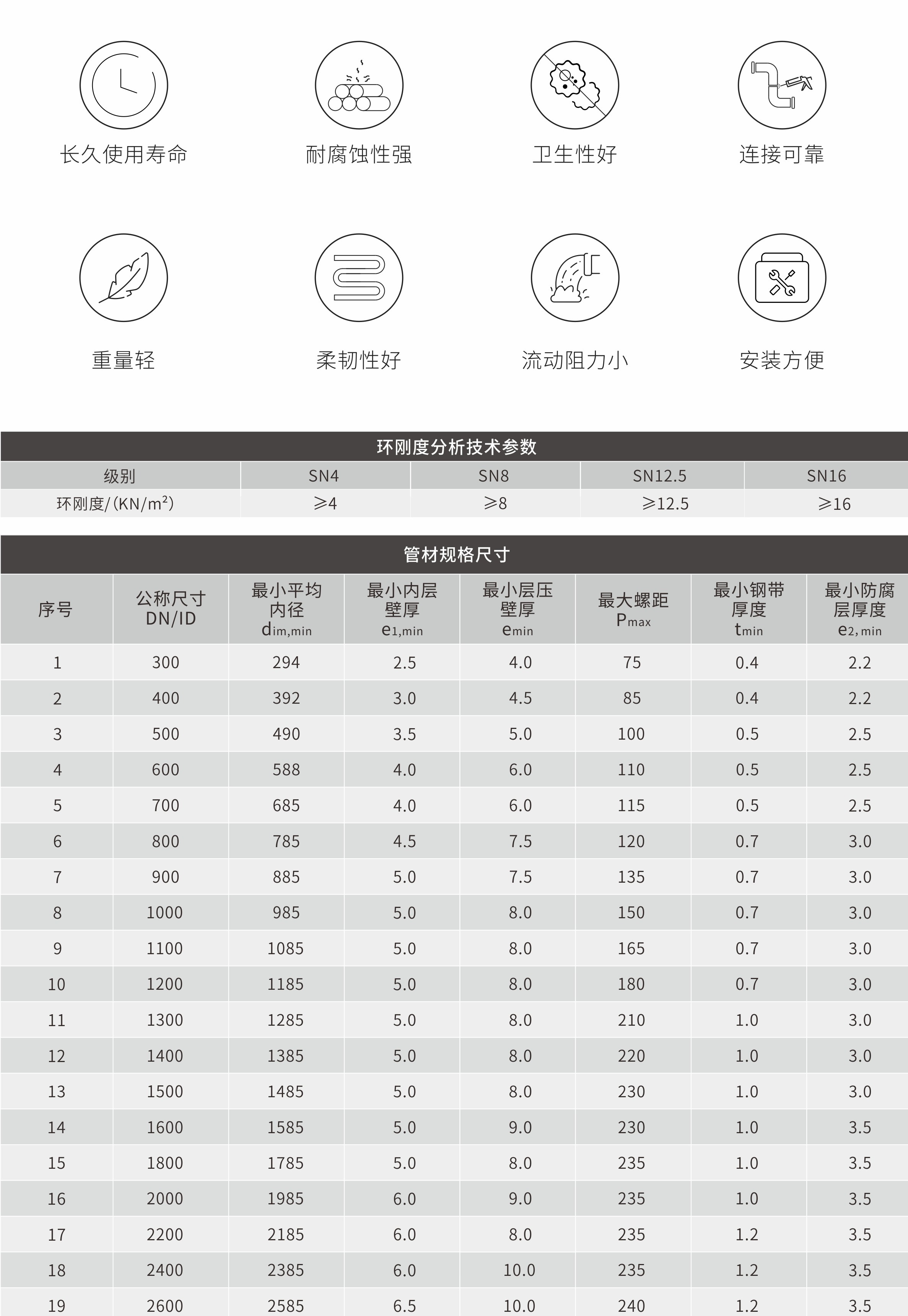 雙層增強(qiáng)改性聚烯烴(ORPO-M)鋼塑復(fù)合管是通過自有接技增容技術(shù)和偶聯(lián)活化技術(shù)、對聚烯經(jīng)增韌樸強(qiáng)為基礎(chǔ),并以獨(dú)特的成型工藝裝置將鋼帶進(jìn)行過塑以連續(xù)維繞成型的一種新型雙層增強(qiáng)管材。管材環(huán)剛度高、柔性好,抗沖擊能力強(qiáng),將塑料管和鋼管的優(yōu)良性能結(jié)合起來,適用于市政埋地排水、無樂排水和建筑室外排水用等領(lǐng)域。