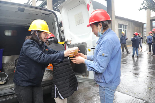 ▲海豐和銳團(tuán)總支青年志愿者奔赴檢修一線送溫暖