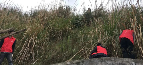 ▲天億新材料團(tuán)支部青年志愿者美化周邊環(huán)境,清理雜草