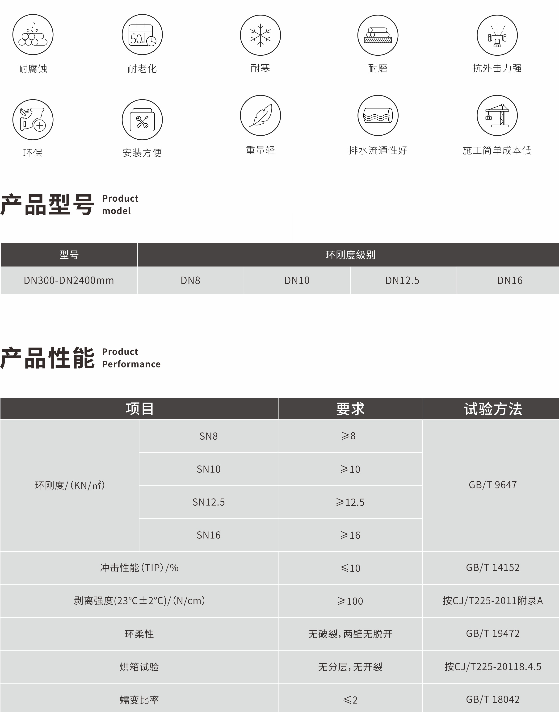 “天原”牌PE(聚乙烯)給水管道采用優(yōu)質全新PE80和PE100原材料,按照GB/T13663.2標準制造。產(chǎn)品具有良好的可焊性、抗環(huán)境應力開裂和快速開裂性,其性能達到國際標準和國家標準的要求。